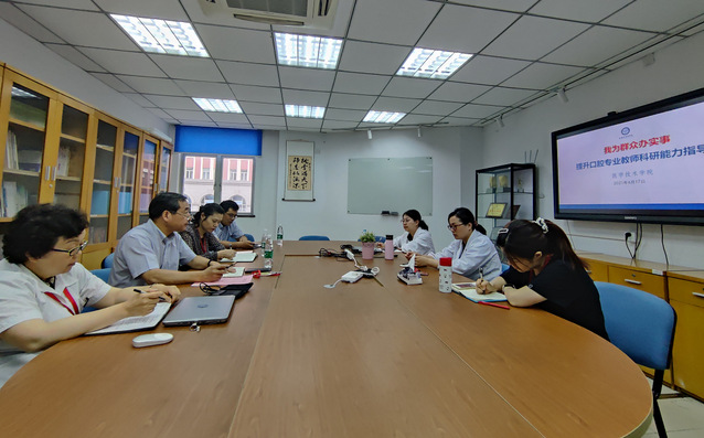 按照学校党委党史学习教育工作的安排,切实开展“我为群众办实事”。2021年6月17日下午沈国芳副校长在北苑3209会议室组织召开了提升口腔专业教师科研能力指导会。医学技术学院党总支书记、院长刘敏娟,医学技术学院副院长陈凤贞、李延飞,口腔医学技术专业周璟、董晛、尚书三位青年骨干教师出席了会议。