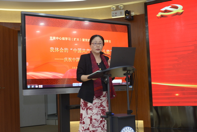6月29日下午,学校党委理论学习中心组学习(扩大)暨党史学习教育专题学习会在南苑图书馆举行。这次专题学习是学校开展党史学习教育的一项重要安排,以“我体会的‘中国共产党为什么能’”为主题,采取参观和讨论相结合的形式进行。校党委书记郭永瑾主持并讲话,全体党委委员、各党总支书记、直属党支部书记出席。市教卫工作党委党史学习教育第一巡回指导组成员:同济大学医学院党委书记张军,联络员:市教卫工作党委办公室李婕妤,根据巡回指导的要求和安排,对此次的专题学习会进行巡听旁听。