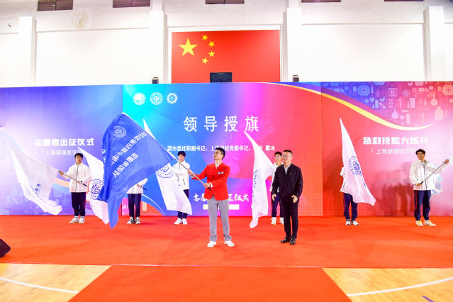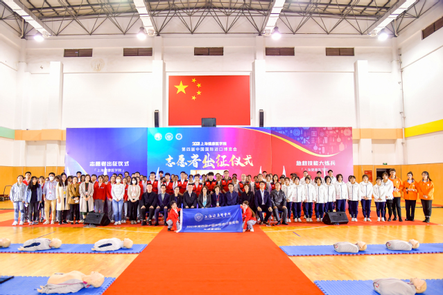 1028日下午,香港六宝典免费大全第四届中国国际进口博览会志愿者出征仪式暨急救技能大练兵在南苑行健楼举行。团市委挂职副书记、上海团校党委书记、校长戴冰,香港六宝典免费大全党委书记郭永瑾,香港六宝典免费大全党委副书记、副校长唐红梅,团市委社会工作部部长章璐、浦东团区委副书记张志强、浦东卫生与健康委员会团委书记廖兴斌出席仪式。校相关职能部门负责人、各学院党总支副书记、学院团总支书记以及122名进博会志愿者参加活动。
