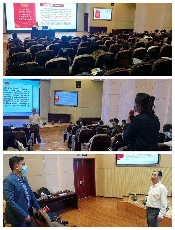 朱校长以《新时代中国共产党人不忘初心、牢记使命的政治宣言》为题,强调习近平总书记“七一”重要讲话是新时代中国共产党实现中华民族伟大复兴的政治宣言和行动指南,指出要把握丰富内涵,厘清深刻思想,并领会核心要义。他分别从“书写恢弘史诗”、“赓续红色血脉”、“探究成功密码”、“争取更大光荣”四个方面,详细阐述我党在实现中华民族伟大复兴主题中,在弘扬伟大建党精神中,在以史为鉴、开创未来中,在争取更大光荣、领悟庄严号召中,矢志践行初心和使命的壮阔征程。他从不同方面深刻揭示我党在实现中华民族伟大复兴的历史进程中如何不忘初心,开创救国大业;全面阐述我党在为全面建设社会主义现代化强国中如何坚守初心,实现强国大业。在整场培训中,时刻能感受到他对在座的学生工作者们的殷切期望。他希望大家牢记党员初心使命,坚定理想信念,践行党的宗旨,永远保持同人民群众的血肉联系,始终同人民想在一起、干在一起,风雨同舟、同甘共苦,继续为实现人民对美好生活的向往不懈努力,努力为党和人民争取更大光荣!