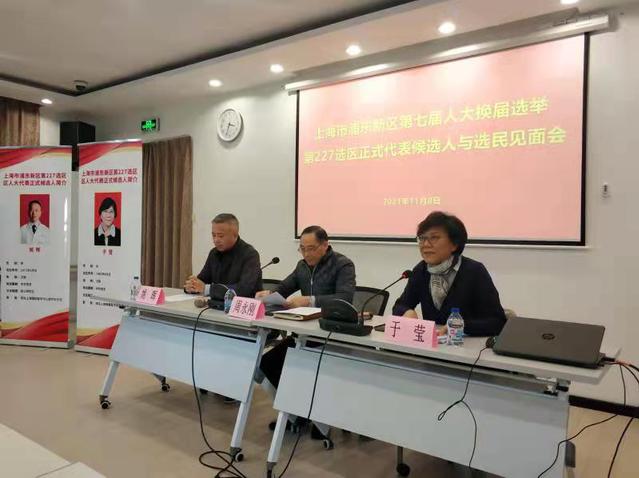 第227选区应选浦东新区第七届人大正式代表1名,正式代表候选人2名,分别为我校党委副书记于莹同志和上海国际医学中心麻醉科主任姚晖同志。见面会上,正式代表候选人介绍个人情况,并对当选后执行代表职务、履行代表义务作表态,还回答了选民的提问。