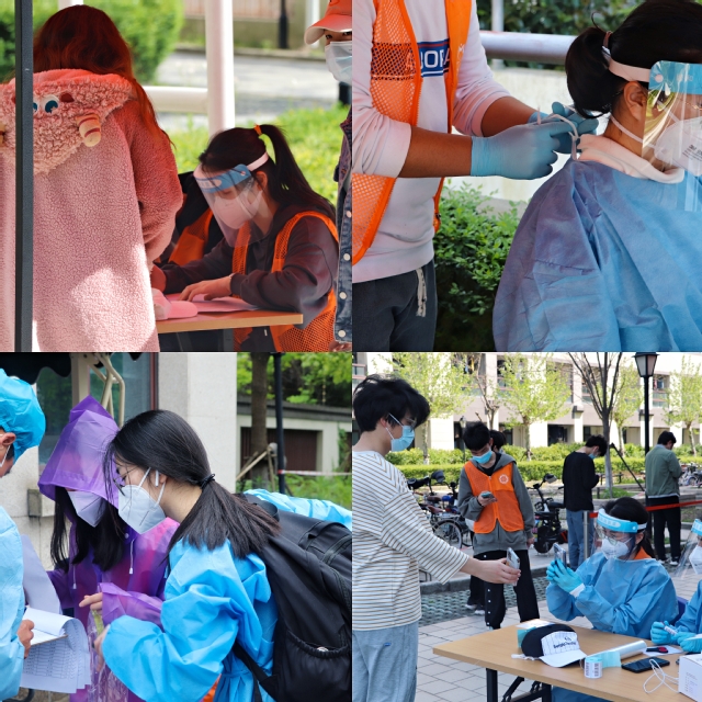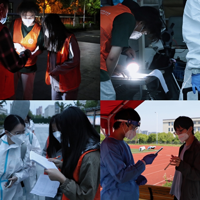 疫情期间,核酸检测是精准防控的有效手段,校园核酸组志愿者的工作格外重要,从3月14日校园准封闭管理开始至今,医疗器械学院有一大批优秀志愿者从始至终坚守岗位,无怨无悔。南苑核酸组组长邢辰宇同学长期在岗位默默奉献、超长待机,有效处理同学们在核酸检测过程中遇到的突发问题,他说:“我无悔于我的奉献。”他的坚守散发出内心的光与热,展现出青春激昂的风采。南苑志愿者负责人李昊龙同学接到上岗通知后,在身体抱恙的情况下毫不犹豫接下工作,开启了长期坚守健康园的任务。我们总是能在不同岗位、不同地点看到他的那抹橘色身影,他说:“我十分荣幸能与这么多志愿者并肩作战,也期待着疫情结束的那一天。”南苑负责人马周赟同学凌晨三点起床参加转运组的工作,送完了凌晨搭乘班车的同学后,天亮了他又马不停蹄地跑去了核酸检测的现场,日复一日均是如此。他说“这个世界上可能确实没有超级英雄,不过是无数人都在发一份光,然后萤火汇聚成星河。”谁说疫情偷走了青春,他们则用青春在这个春天温暖了校园!