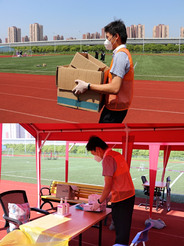 18级毕业班同学张路安身为一名学生党员,在实习单位工作时听闻学校需要疫情防控志愿者,毫不犹豫地和单位领导提出了申请,同时主动向学校老师申请返校担任志愿者,表示自己会带着核酸检测报告返校支援。他说“在人民需要的时候挺身而出是一名党员义不容辞的责任”。他作为南苑保障组的组长,为其他防控小组提供物资(志愿者服装、口罩,饮用水等)以及人员上的支援。在核酸现场,自从激光扫码器换成了手机,由于受强光影响,不少核酸检测的二维码出现了扫不出的情况,影响了采样的速度,他脑洞大开用废纸箱挖个洞,做好消毒后为核酸码搭建一个“迷你遮阳棚”,大幅提高了扫码成功率和核酸检测的整体效率,同时也减轻了志愿者同学们的负担,让师生感受到核酸筛查的“精度”和“温度”。