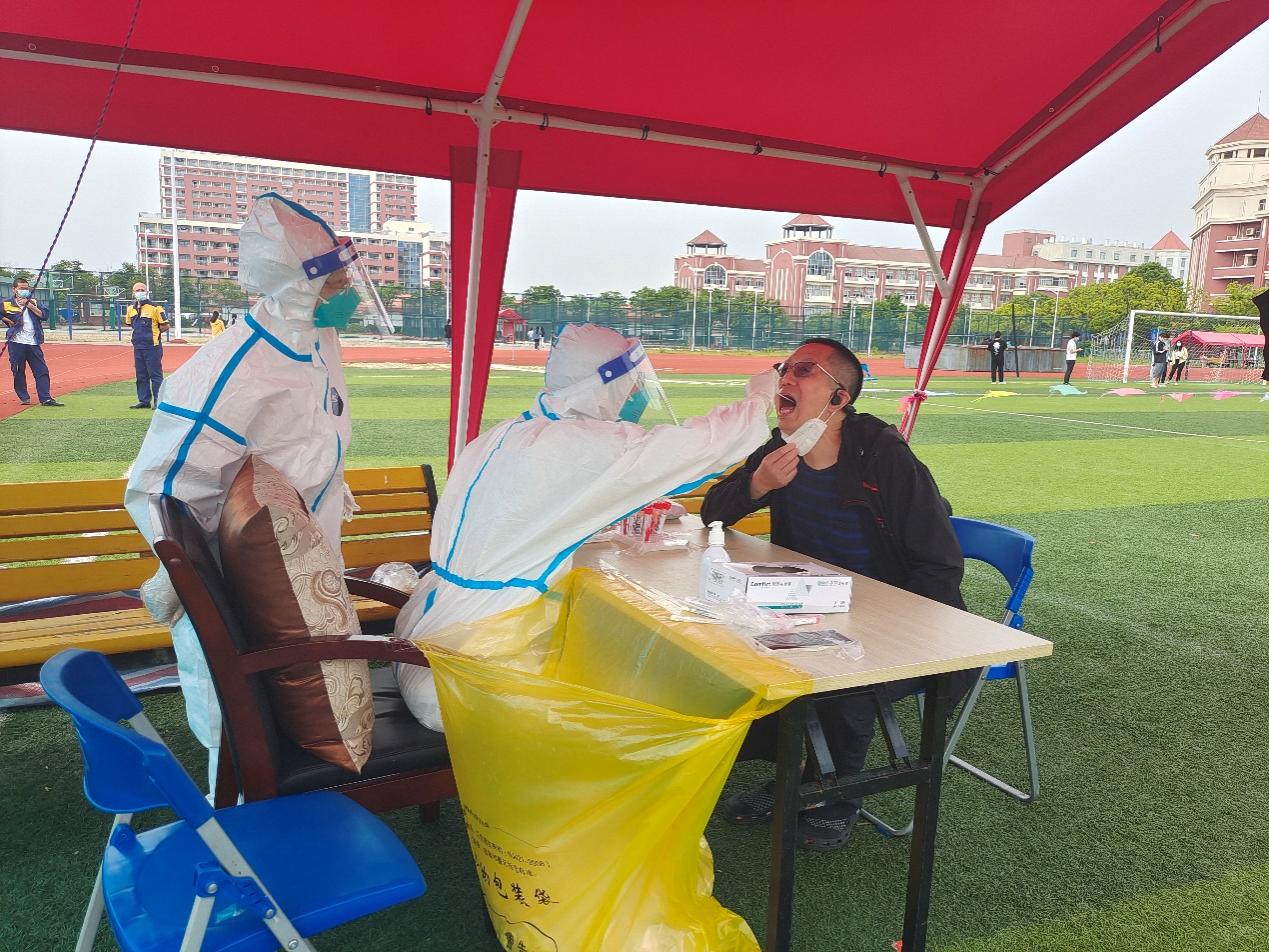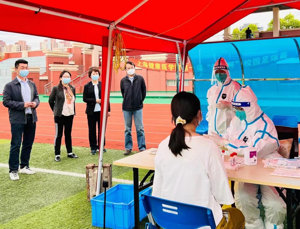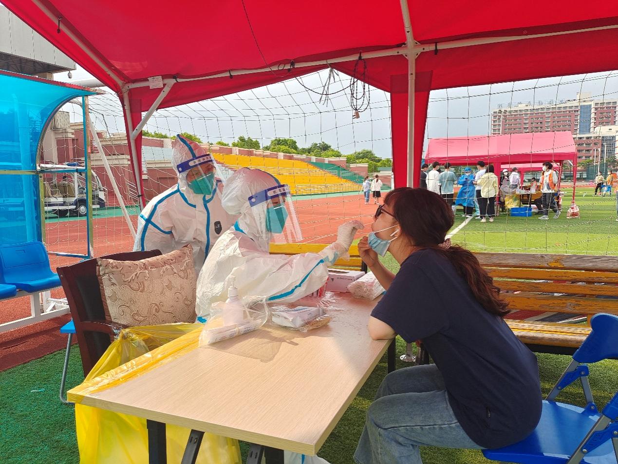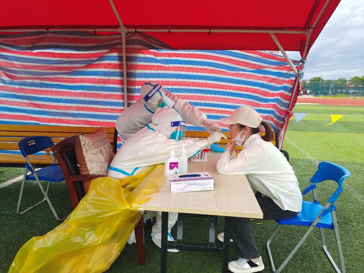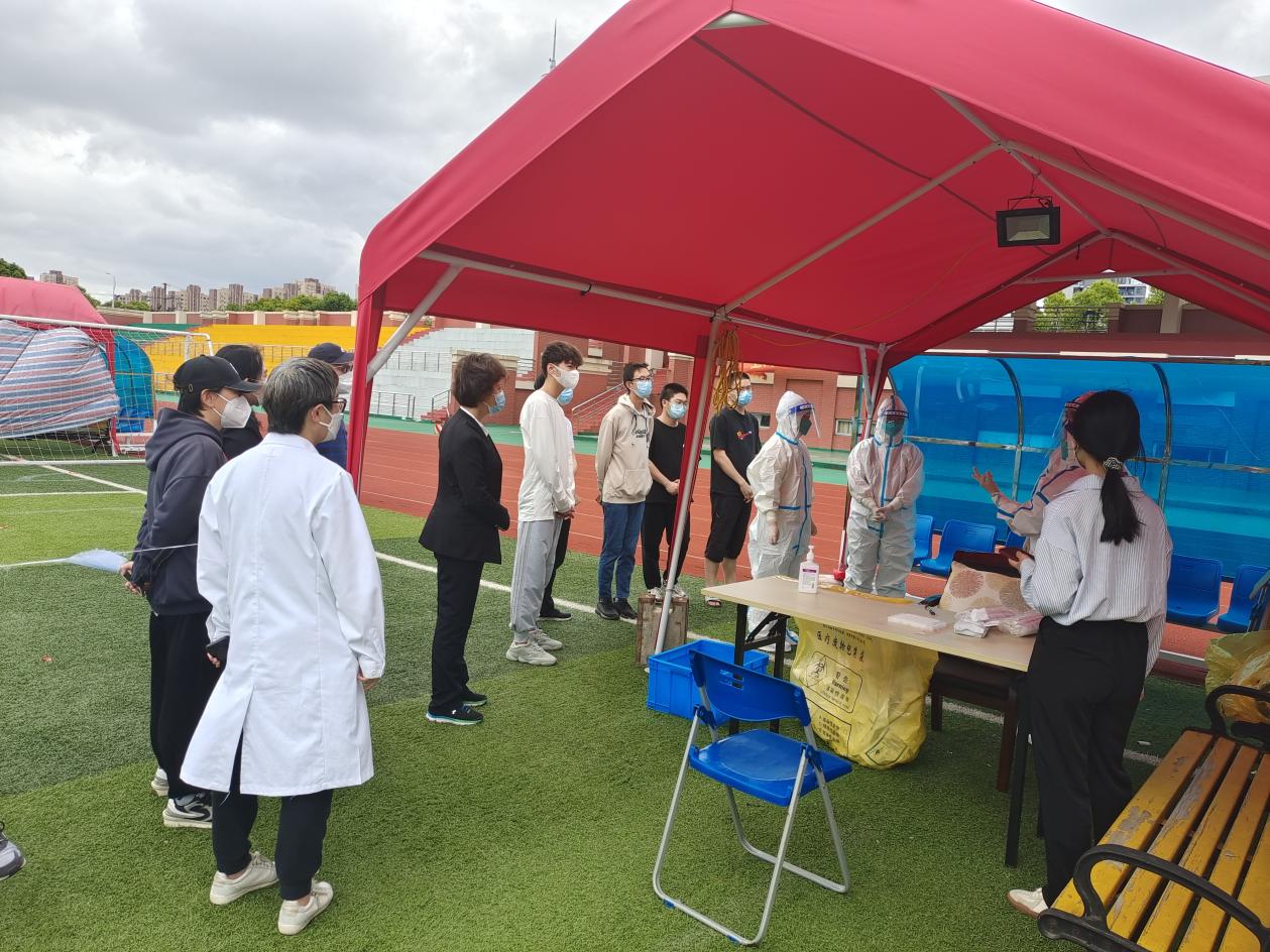 我校附属崇明中心医院8名驻校采样医护人员将于5月底离校,根据当前疫情防控形势,为进一步做好疫情常态化核酸检测工作,我校重新建立了一支完全由在校师生员工组成的相对稳定的核酸检测工作队伍,每天在三苑区定点开展核酸检测工作,保障师生健康和校园安全。
