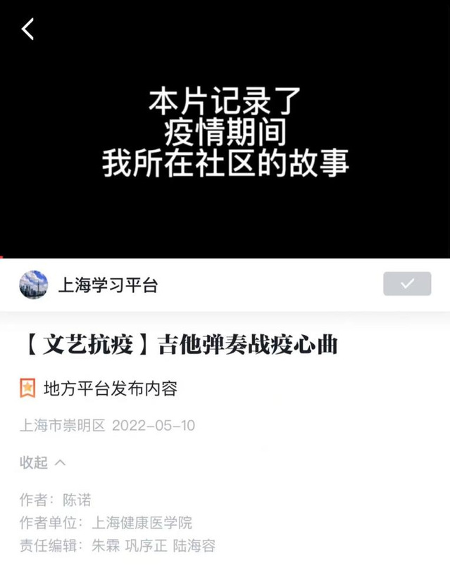 在志愿工作的同时,她也通过视频创作的方式记录自己的志愿者生活,并被学习强国平台转发报道,传播正能量。