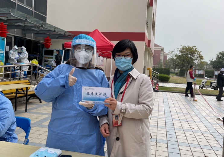 做头雁带头驻守,召即回。从3月中旬开始,全市陆续出现小区封闭管理的情况,凭着专业的敏感性,她就早早准备好行李箱,每日随身携带,时刻应对突发情况发生。自从学校开始封闭管理,她成为学校第一批校内驻守干部。在她带领下,与驻守辅导员、校外干部协同,建立学院学生信息日报、建立墙报首周疫情防控挂图作战、党总支疫情防控周报、协调处理各临床教学基地的学生安排、关心少数民族学生的生活和就医等,临床医学院在校学生无1例违反疫情防控校纪校规情况。为了持续性打赢疫情防控战役,成立了驻校党员临时党支部。即使轮岗校外期间,她也时刻关注校内外师生状况,她的行李箱也一直处于备战状态,4月23日,她又再次应召返回了校园,披上铠甲,开始新的战“疫”。