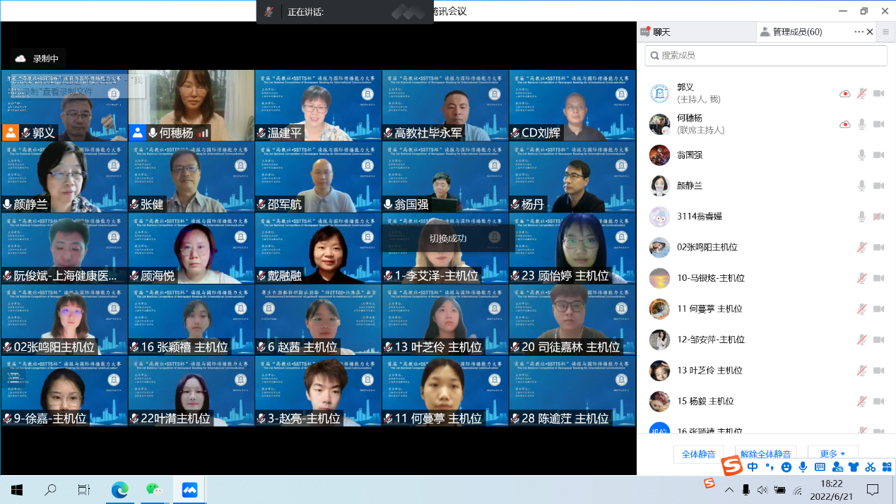 2022年5月-6月,外语教学部教师团队带领学生参加首届“高教社·SSTTS杯”全国读报与国际传播能力英语大赛,该大赛获得CHINA DAILY21世纪教育传媒支持。以优异成绩荣获全国一等奖1名、二等奖3名等奖项。学校获得最佳组织奖,阮俊斌、沈军等教师获得优秀指导老师称号。