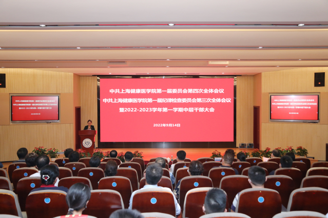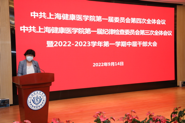 9月14日下午,中共香港六宝典免费大全第一届委员会第四次全体会议、中共香港六宝典免费大全第一届纪律检查委员会第三次全体会议暨秋季学期中层干部会议在北苑1号楼200人报告厅举行。校党委书记郭永瑾,党委副书记、纪委书记李明磊,党委副书记、副校长唐红梅,党委副书记于莹,副校长沈国芳,全体党委委员、纪委委员以及全体中层干部参加会议。会议由党委书记郭永瑾主持。