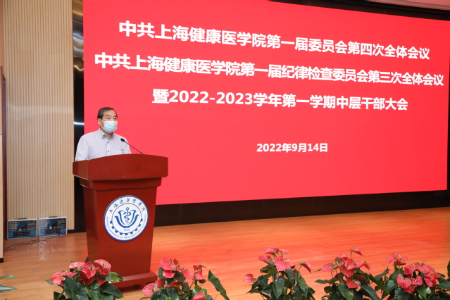 郭永瑾传达了2022年秋季上海高校党政负责干部会议精神并作讲话。郭永瑾指出,上半年,我们坚决贯彻中央和市委决策部署,全校师生团结一致,众志成城,为打赢“大上海”保卫战作出了自己的贡献,校园疫情防控工作非常出色,也得到了市教卫党委等上级部门的充分肯定。学校各项工作不断不散不乱,本科教学工作合格评估、学生就业、校园基本建设等年度重点工作稳步推进,展现了全体上健医人在困难面前、在挑战面前、在压力面前的担当和坚守。
