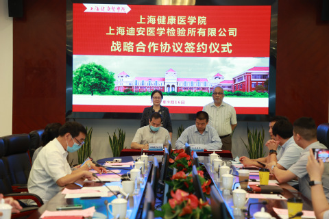 学校护理与健康管理学院院长朱爱勇,医学技术学院党总支书记、院长刘敏娟,医疗器械学院党总支书记李晓欧,产学合作处副处长高广文,教育发展基金会秘书长、校友工作办公室副主任王红;上海迪安医学检验所有限公司常务副总经理刘贞、副总经理郭慧萍、副总经理吴香妮、运营副总经理吴萍萍、人力资源经理李强,迪安诊断集团校园招聘经理杨滔,迪安诊断集团CEO商务助理陆韵出席仪式。(产学合作处、校友工作办公室)
