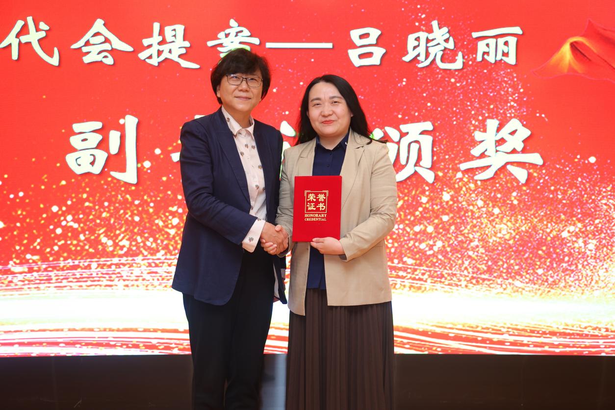 随后进行了表彰和授牌仪式。郭永瑾为 2023年上海市五一劳动奖状获得者附属卫校、2023年上海市五一劳动奖章获得者吴怡欣、2022年上海高校后勤保卫系统第五届“绿叶奖”上海学校后勤标兵张美蓉、上海高校校园卫士童清颁奖。唐红梅为2022年第五届上海高校青教赛一等奖、二等奖、三等奖、优胜奖、优秀组织奖颁奖。于莹为2021-2022年度教育系统“劳模精神进校园”活动优秀组织奖、2022年度上海市教育系统最佳教代会提案颁奖。