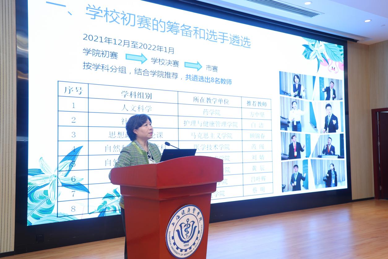 接着会议对第五届上海高校青年教师教学竞赛进行了总结。校工会常务副主席凌文惠代表校青教赛工作组作本届青教赛工作总结。她从学校初赛的情况和市赛选手的遴选、选手的备赛、工作组的赛前准备及本次市赛的参赛情况及赛后的体悟与到会的老师们共同进行了一次回顾和总结。她首先感谢青教赛工作组成员的通力合作。尤其为我校的本届青教赛选手克服困难、奋力拼搏、终获佳绩而由衷的感动,青年教师在市赛的平台斩获1个一等奖,1个二等奖、4个三等奖及2个优秀奖的好成绩表示衷心的祝贺。青教赛以“立德树人”为根本,以“上好一门课”为理念,以“匠心·树人”为主题,坚持知识传授、能力培养与价值塑造相结合,注重“课程思政”改革,弘扬劳模精神、劳动精神和工匠精神,引领教师当好学生成长的引路人,推动打造一批教育理念先进、热爱教学的教学带头人,争做大先生、研究真问题,成为学生为学、为事、为人的典范,以赛促教、以赛促学,助力打造特色一流的上海高等教育。
