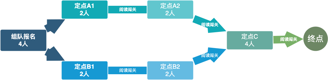 比赛分为小组赛和个人赛,均以阅读闯关总用时为评比标准,用时短者为胜。其中:
