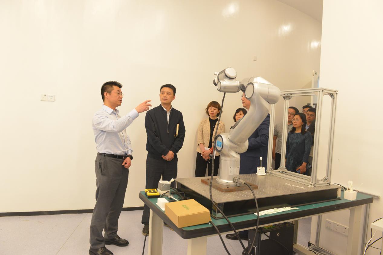 座谈会前,吴韬陪同张文一行在学校参观了上海市智能医疗器械与主动健康协同创新中心。