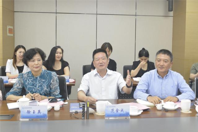 6月9日上午,校长吴韬与上海现代服务业联合会大健康专委会主任范金成一行开展调研座谈会议,校主题教育调研组、党校办、产学合作处、科技处、发展规划处、图文信息中心、临床医学院、护理与健康管理学院、康复学院、药学院、医疗器械学院等负责人参加座谈。会议由校党委副书记于莹主持。产学合作处副处长高广文介绍了学校的历史沿革、教育教学、人才培养、科学研究、学科建设等情况。