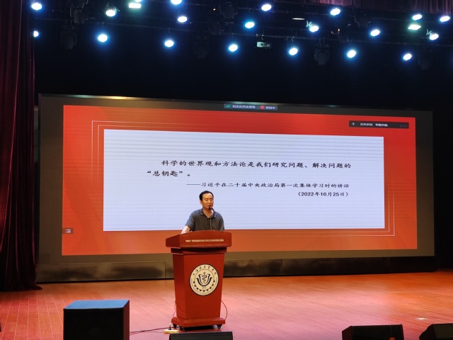不断提升理论素养才能始终保证党员的行动方向正确。上海大学孙会岩老师从习近平新时代中国特色社会主义思想是如何创立的、主要包含哪些内容,如何把握习近平新时代中国特色社会主义思想的世界观和方法论三个方面做了一场“习近平新时代中国特色社会主义思想的世界观和方法论”讲座,引导各位党员在学习、生活和工作中要坚持人民至上的价值立场、自信自立的理论立场、坚持守正创新的创新思维、问题导向的实践观点、系统观念的辩证思维。马克思主义学院李留义老师以“加强党性修养,坚定理想信念”为主题,从“理想”二字展开,阐释理想信念的哲学内涵,从人与动物的区别即“生存”与“生活”,展开了对信仰更深层次的讲解,用生动的例子及与西方传统形而上学思想的对比,向我们证明了为什么要信仰共产主义,面对多元思潮,如何坚定理想信念,提升党性修养。此次培训紧跟主题教育要求,不断创新学习形式,在培训班中开设习近平新时代中国特色社会主义思想读书班,指定相关阅读书籍,开展专题小组交流分享学习,提升各位学员学习理论知识的自觉性和主动性。
