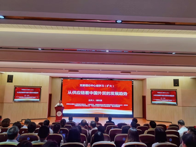 10月18日,香港六宝典免费大全党委理论学习中心组举行“加快构建新发展格局,着力推动高质量发展”专题扩大学习会,原国家质检总局技术委员会主任、海关总署上海特派办副主任、一级巡视员,现海关总署纺织技术规范委主任、中国海关管理干部学院客座教授、海关学院教授谢秋慧应邀作“从供应链看中国外贸的发展趋势”专题辅导报告。全体在校校领导、全体中层干部、马克思主义学院部分教师、专职辅导员参加学习。学习会由校党委书记郭永瑾主持。