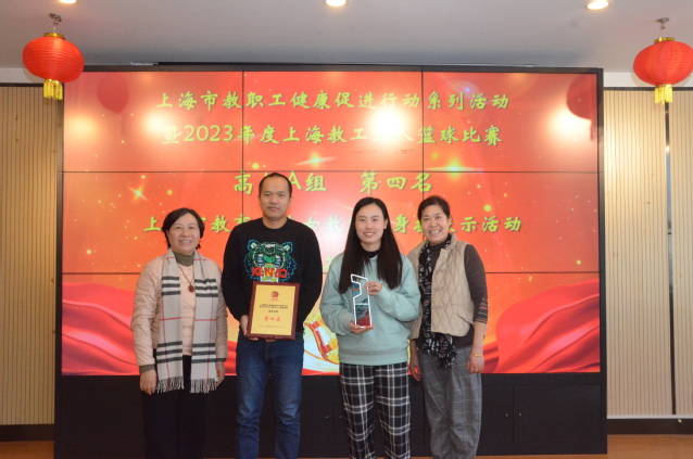 芦静宣读2023年下半年教职工参加上海市教育工会(妇工委)及学校各类活动的获奖集体:香港六宝典免费大全第九届运动会教工团体前八名、2023年上海教工三人篮球第四名、2023年女教师健身操比赛第二名。凌文惠、芦静、郁建新为获奖的集体颁奖。
