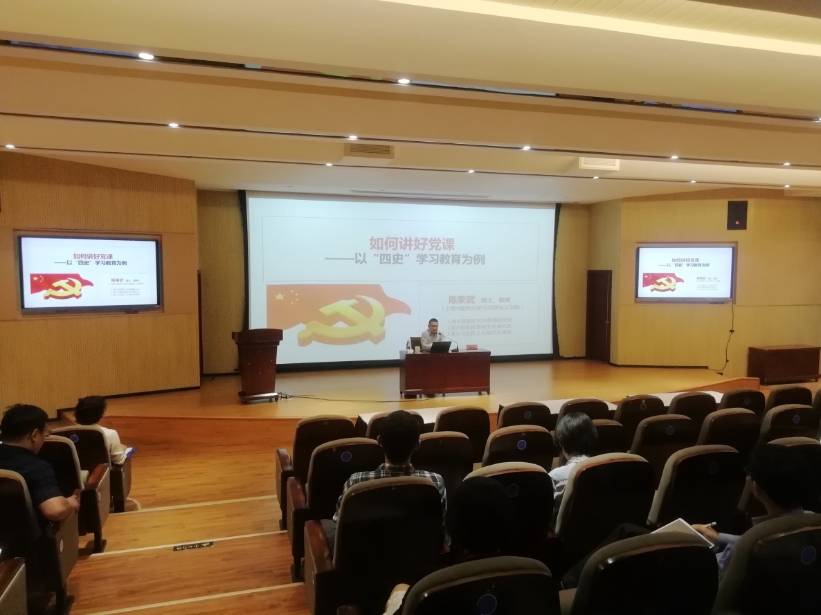 陈教授首先从整体上介绍了“四史”内涵、“四史”各个部分之间的相互关系;随后,就党员干部为什么讲党课、如何带头讲好党课展开论述,具体阐述了党课内涵的基本要素、党课的属性、党课常见问题的,并以“四史”为例,对如何上好一门专题党课结合我校实际情况提出针对性建议,不同层次书记面对授课群体要分层分类设置授课主题,内容要形式丰富多样,讲求宣讲实效;最后,给大家提供了部分授课参考主题。