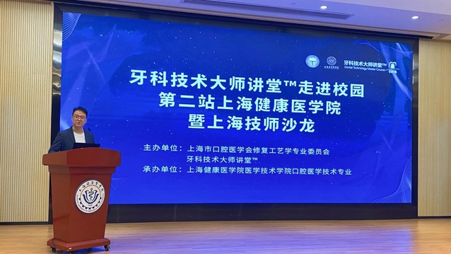 2023年5月18日,由上海市口腔医学会口腔修复工艺学专委会主办的“牙科技术大师讲堂™进校园暨上海技师沙龙”在我校北苑1号楼200人报告厅召开。