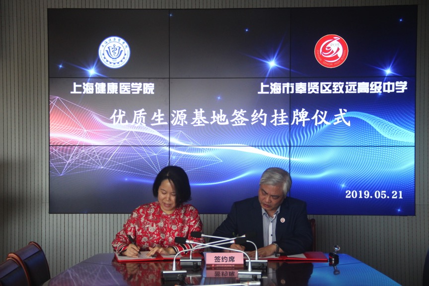 5月21日下午,我校与上海市奉贤区致远高级中学“优质生源基地”签约挂牌仪式在致远高级中学行政楼四楼会议室举行。负责上海市奉贤区招生宣传工作的马克思主义学院直属党支部书记朱清、院办主任朱晟曌,致远高级中学校长李龙权及教师、学生代表共同参加了签约和挂牌仪式。