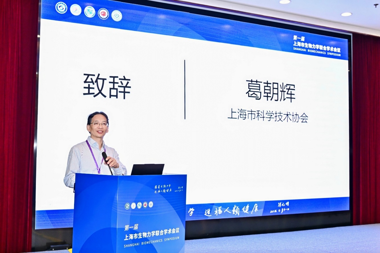 上海交通大学船建学院工程力学系龚晓波教授主持开幕式。龚晓波教授在欢迎辞中,热烈欢迎了来自上海各高校、医院、科研机构及相关企业的生物力学领域同仁,并介绍了本次会议的背景和宗旨。他强调,会议旨在促进上海市生物力学相关学科的交叉融合、人才培养及产学研结合,打造一个跨学科、多领域的高质量学术交流平台,推动生物力学研究的协同发展。