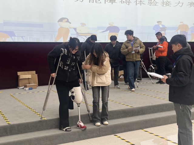 竞赛内容涵盖理论知识与实操技能两大板块。理论知识部分包括上海市残联相关政策、辅助器具案例分析以及辅具医学知识等;实操部分则分为模拟视力障碍、模拟肢体障碍、辅具安装和精准评估与适配四个模块,全面考察学生的专业能力与团队协作能力。