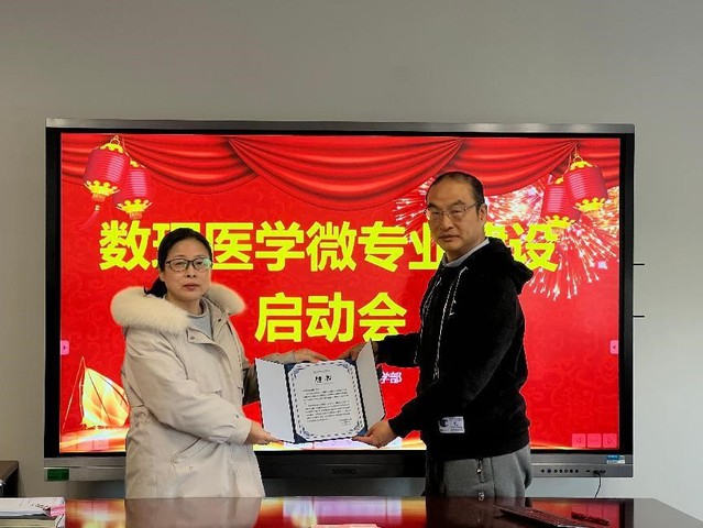 教学部主任耿铭为数理医学微专业的三门基础课程的负责人颁发了聘书,并对微专业建设提出了五点指导建议。一是脚踏实地,完成好课程的各项建设任务。微专业建设的基础工作是课程建设,是决定微专业建设成败的关键,要确保课程内容设计、教学资源、教学方法等都达到高标准,满足学生的学习需求。二是聚焦目标,朝着专业建设发展前进。数理医学微专业建设作为数理医学专业建设的前奏与序曲,也是数理医学专业的重要组成部分,微专业要胸怀梦想推动其向更高层次发展。三是着眼长远,明晰学科发展思路,建设学科发展阵地。团队成员形成具有前瞻性的学科发展思路,通过建设学科阵地为学科发展提供有力支撑,为专业建设建构扎实的学科基础。四是综合思考,全面取得成效。参与微专业建设的每一位成员要在建设工作中成长,教师要充分发挥课程建设所形成的成果的作用,积极参加各级各类教学竞赛,组织带领学生参加学科竞赛,给微专业提供创新的源动力。五是拓展资源,快速提升相关能力。微专业建设团队要积极拓展校内外部资源,加强与兄弟院校、行业、企业的合作,引进优秀人才和先进技术,快速提升微专业建设所需的相关能力。