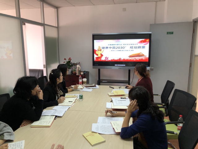 李婷婷老师带领大家一起认真学习了《“健康中国2030”规划纲要》,重点解读了目标战略、普及健康生活、优化健康服务、完善健康保障、建设健康环境、发展健康产业、健全支撑与保障等方面主要内容。结合规划纲要和医技学院的办学目标和专业群,老师们对专业的发展前景信心满满。