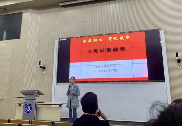 10月17日,康复学院学生党支部在南苑W100举行“不忘初心、牢记使命”第二次入党启蒙教育讲座。全体19级新生参加了本次讲座。