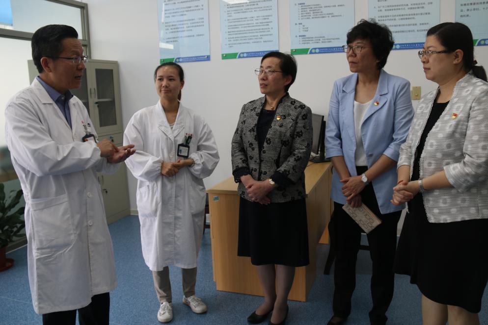 市委第十一巡回指导组副组长刘可等一行和学校“不忘初心、牢记使命”主题教育领导小组成员详细了解了门诊部的具体运营情况并到各科室与医务人员深切交流。驻扎的医务骨干中就有我校2007级影像技术专业校友施亚燕,见到母校老师,她激动的说:工作后一直铭记刚进学校时许下的医学誓言,保持着对医学的热爱,非常感谢母校对我的严格要求和悉心培养,能成为小洋山岛医疗服务保障中的一员感到特别光荣,我将始终坚守健康人的初心。