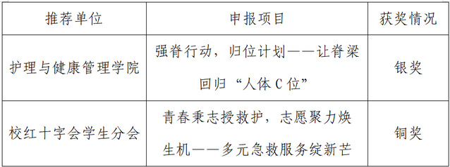 在由共青团上海市委员会、上海青年志愿者协会主办的第五届“奉献杯”上海青年志愿服务项目大赛中,我校学子以“用爱心传递温暖,用行动诠释奉献”的赤诚之心从全市众多优秀项目中脱颖而出,最终斩获银奖1项、铜奖1项,展现了健康学子无私奉献的动人风采。获奖项目如下: